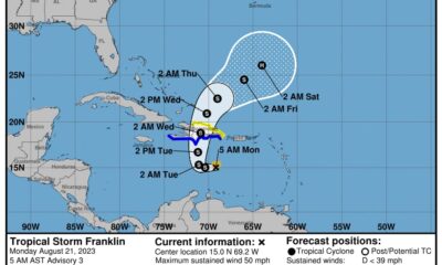FRANKLIN CONTINÚA SIN CAMBIO DE INTENSIDAD AL SUR DE SANTO DOMINGO SOBRE AGUAS DEL MAR CARIBE -SOMOS CIBAO- La Oficina Nacional de Meteorología (ONAMET) informa que...