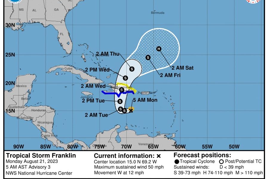 -SOMOS CIBAO- 🔴 La mañana de hoy lunes la Tormenta Franklinse mantiene con vientos de 50 mph y se mueve al oeste a 12 mph.🔴 Por...