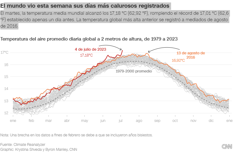 -SOMOS CIBAO- (CNN) — Esta semana se registró la temperatura global más alta jamás registrada, según los Centros Nacionales de Predicción Ambiental de EE.UU.