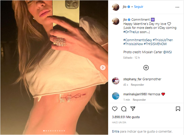 En una publicación de Instagram, “La Diva del Bronx” mostró el símbolo de infinito con una flecha en el centro en el que se puede leer “Ben” en un extremo y “Jennifer” en el otro.