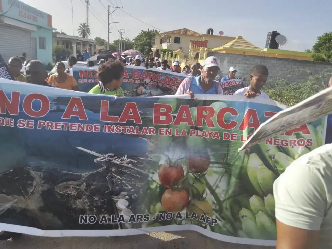 -SOMOS CIBAO- Azua.- Cientos de comunitarios del distrito municipal de Los Negros y comunidades aledañas de la Provincia de Azua se movilizararon la tarde del sábado en rechazo a las dos barcazas colocadas por el gobierno en la Playa de Puerto Viejo en la costa sur.