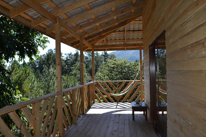 Eco-Aventura no cuenta con un lugar que ofrezca alojamiento, pero sí lo coordinan a petición de los visitantes. Actualmente hay cuatro cabañas disponibles para los grupos y familias que deseen pernoctar: las casas de campo Los Soñadores, Nuevo amanecer y Paraíso Serrano, y una pequeña cabaña para cuatro personas que administra Elvin.